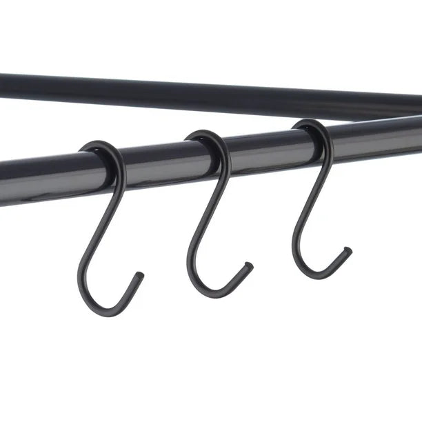 Closet Organizer which is great for storing clothing, shoes, bags, linens, blankets and bins. Comes with 6 S-Hooks for additional storage.